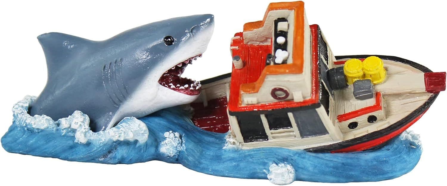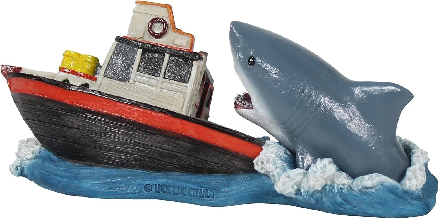 - OFFICIALLY LICENSED: Bring some action and thrill into your fish tank with the iconic boat attack scene from Jaws! This aquarium ornament is great for anyone who loves the Jaws franchise or anything nautical and beach themed!